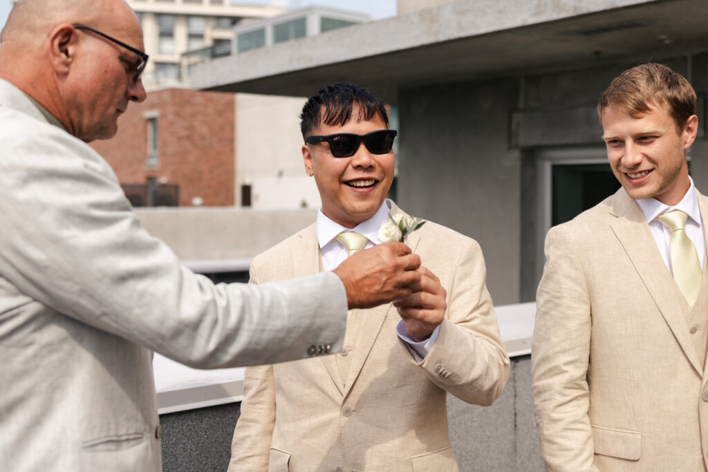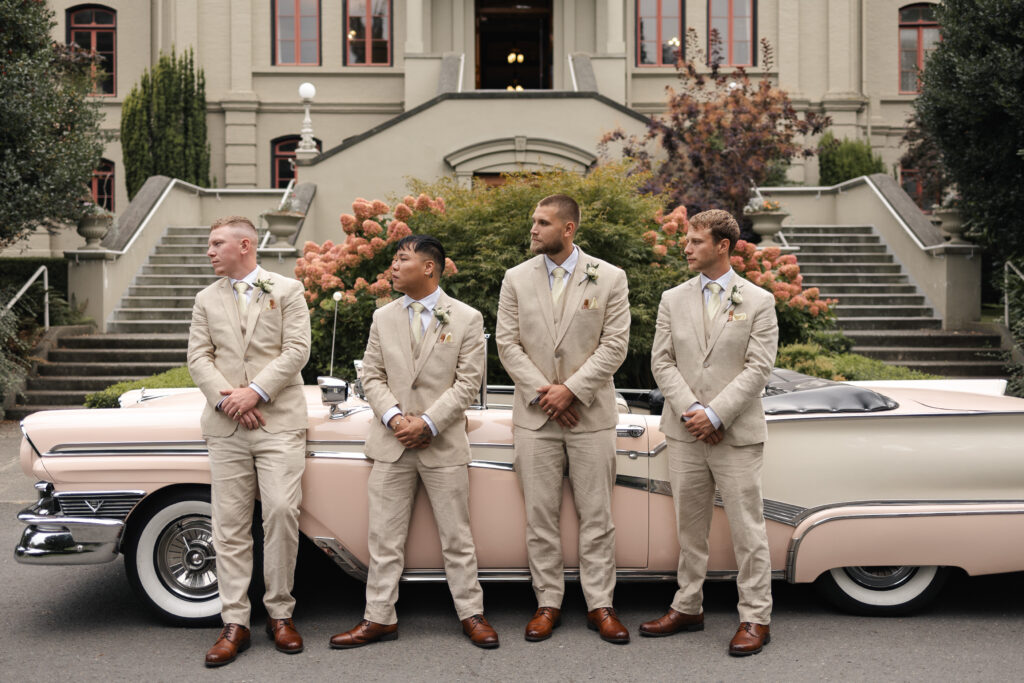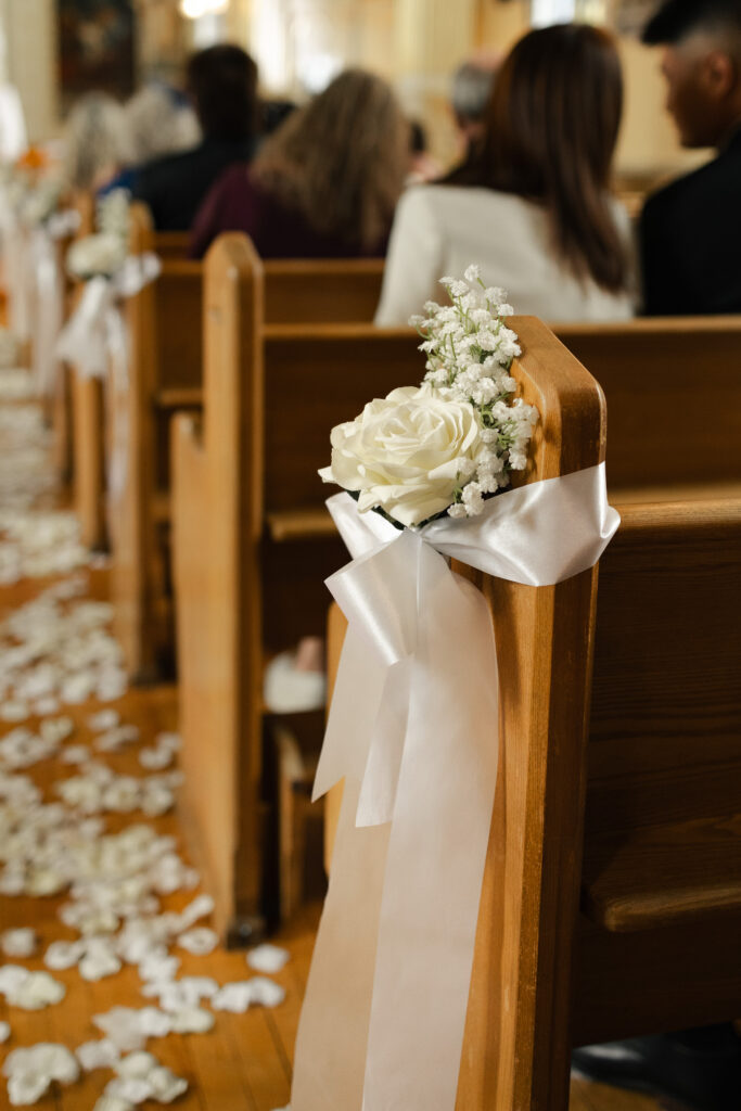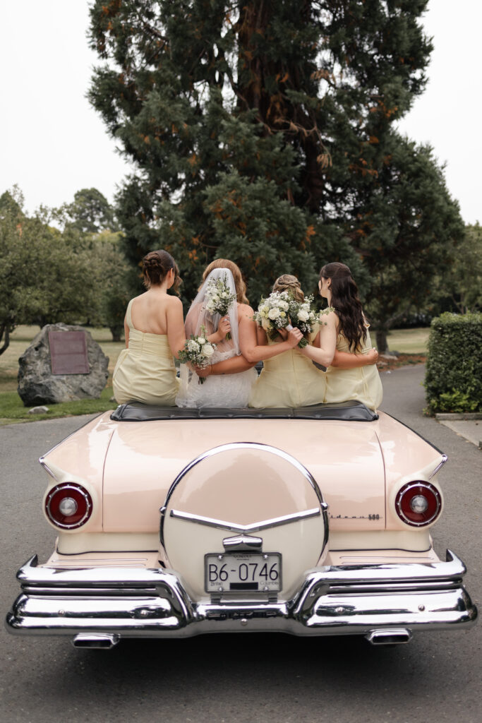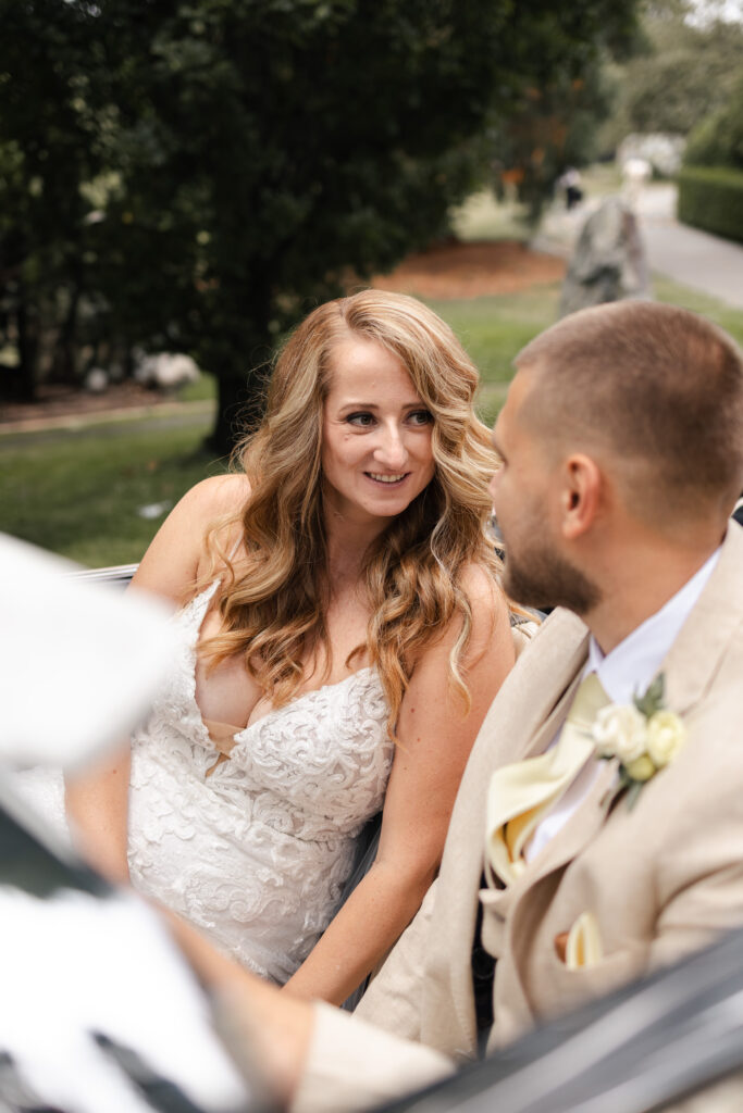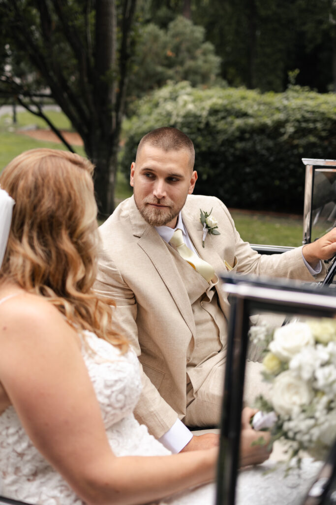 After the ceremony, the newlyweds celebrated with a champagne toast, followed by outdoor portraits in front of the cathedral. They even got photos in a vintage wedding car, adding a touch of classic charm to their photos.