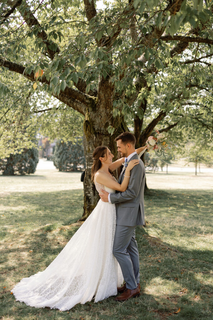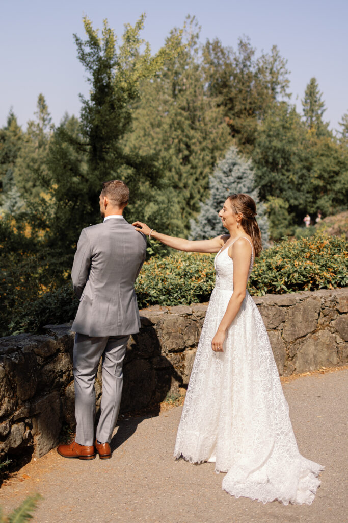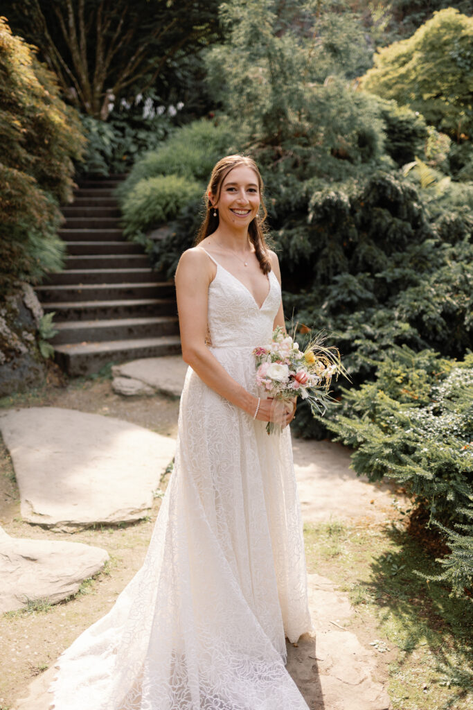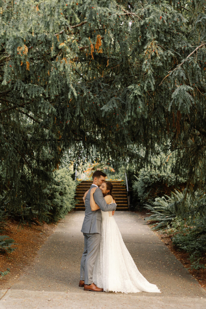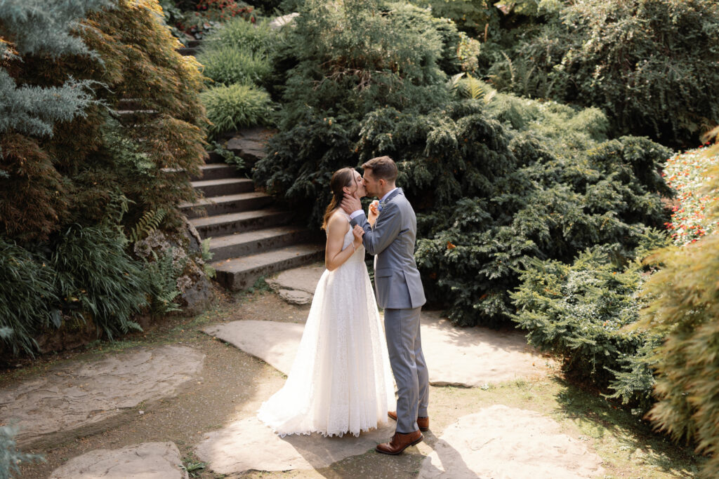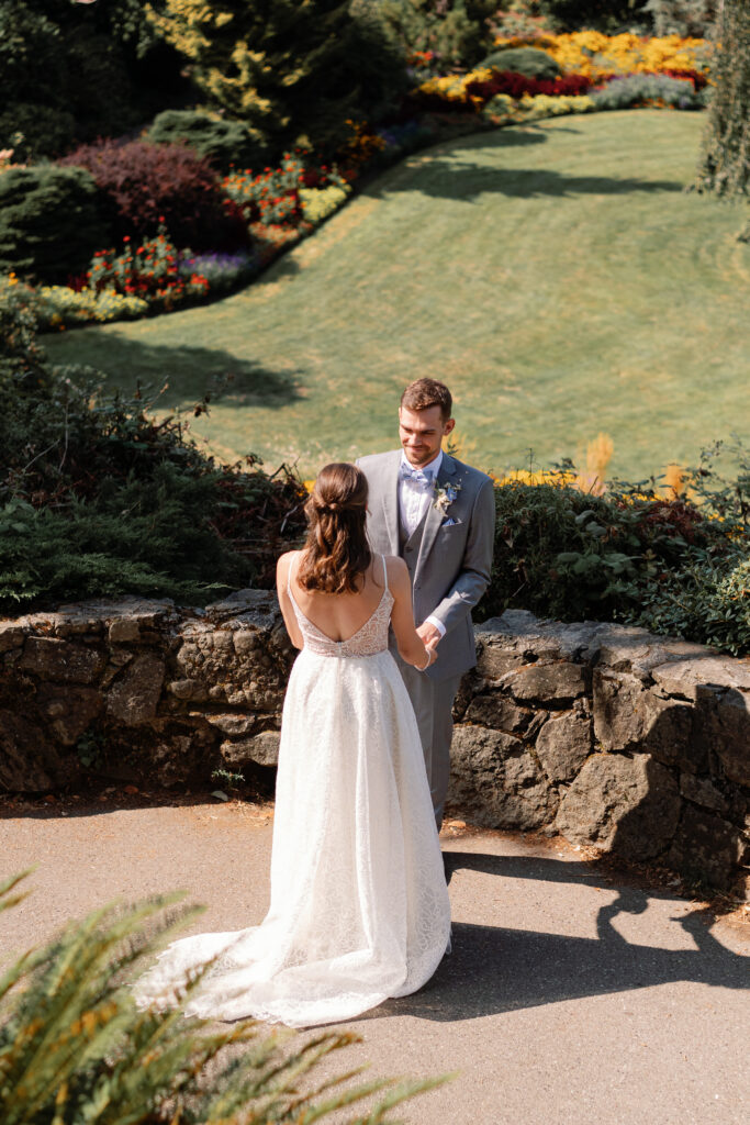 The day began with their portraits at Queen Elizabeth Park, where they chose to share a quiet first look tucked into the gardens. It was one of those moments that felt completely untouched – just the two of them, taking it all in before the celebration began. As a Vancouver wedding photographer, these are the moments I live for. Honest, emotional, and deeply personal.