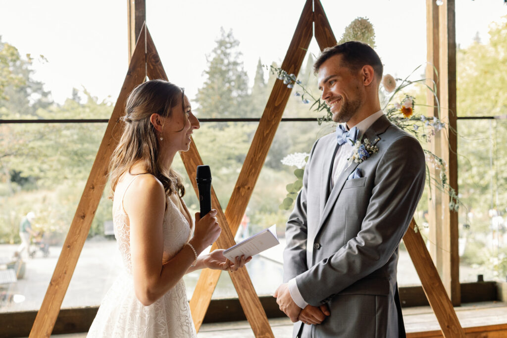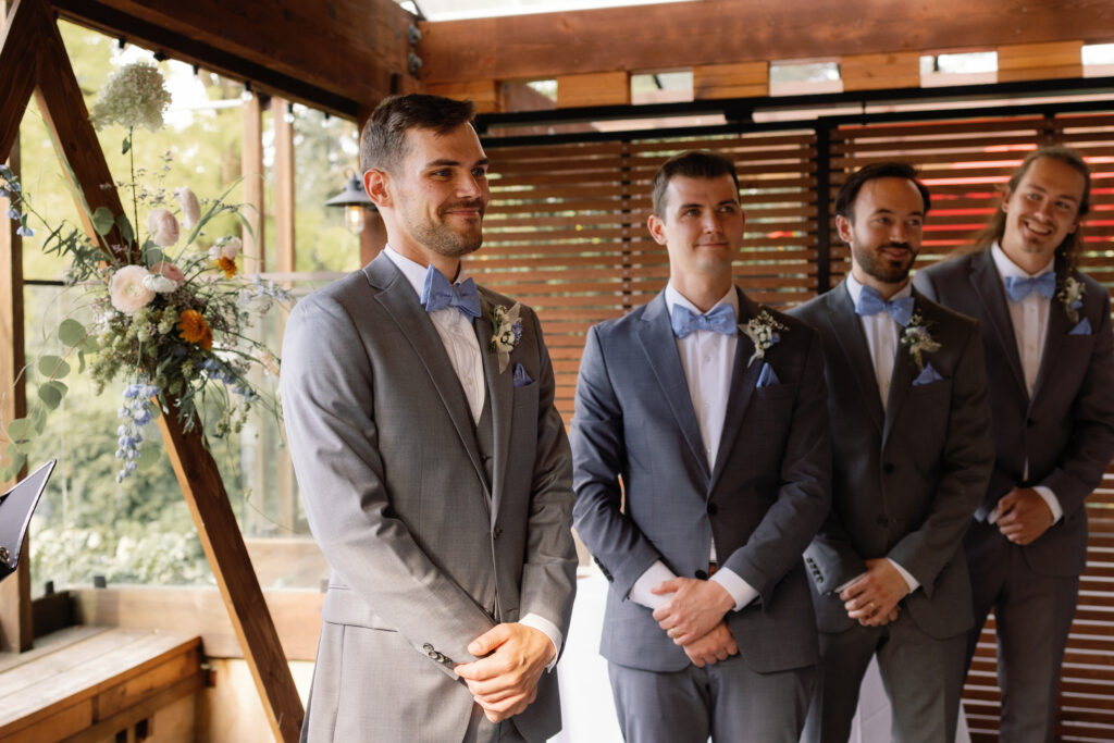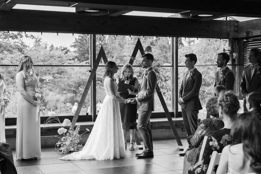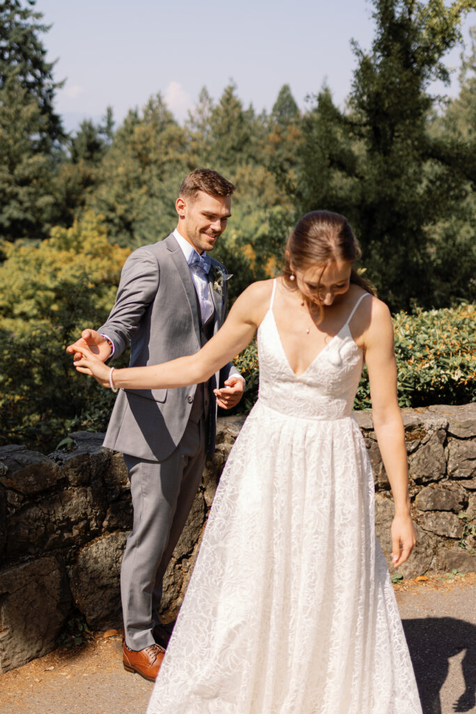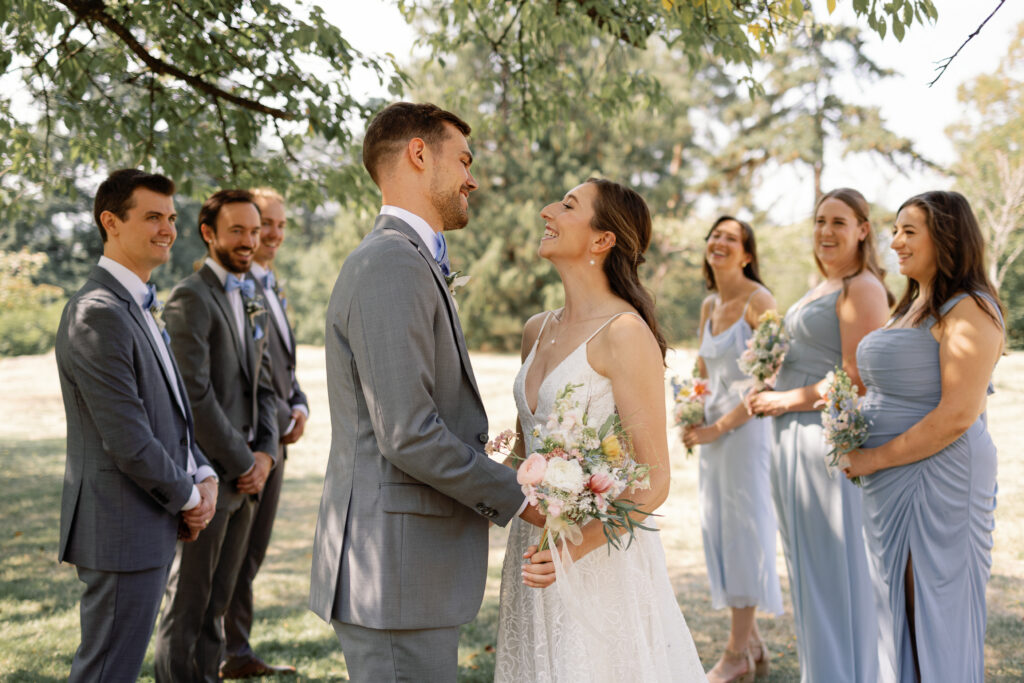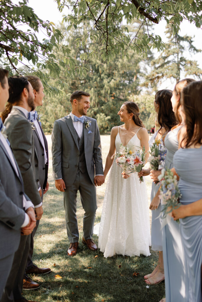 The day began with their portraits at Queen Elizabeth Park, where they chose to share a quiet first look tucked into the gardens. It was one of those moments that felt completely untouched – just the two of them, taking it all in before the celebration began. As a Vancouver wedding photographer, these are the moments I live for. Honest, emotional, and deeply personal.